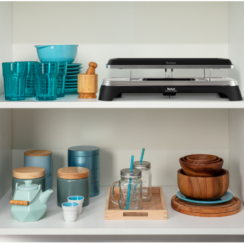 Het compacte ontwerp zorgt ervoor dat de Tefal Raclette 3-in-1 makkelijk op te bergen is, zelfs in kleinere keukens. Dit maakt het een ideaal apparaat voor iedereen die van koken en gezellig tafelen houdt, zonder concessies te doen aan ruimte.