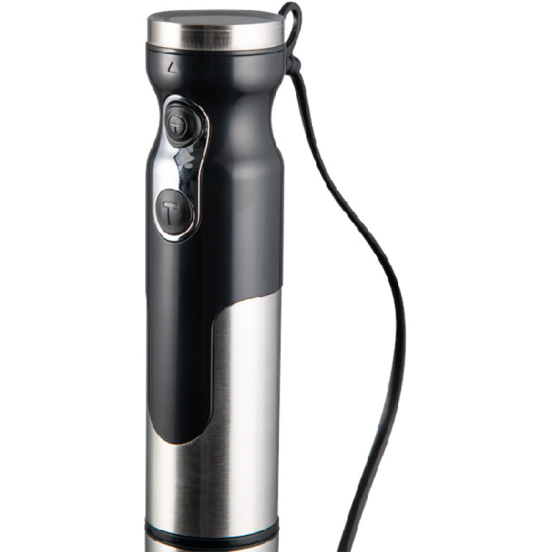 Deze zwarte staafmixer van het merk Koenic mixt moeiteloos al je soepen. Hij heeft een ergonomisch design en weegt slechts 1,2 kg: hij ligt dus perfect in de hand. Met 800 W beschikt hij over voldoende vermogen om zijn 2 programma's te bedienen. De afneembare blenderarm heeft 4 scherpe messen, waarmee je zelfs de kleinste stukjes groente fijnmaalt. Hij gaat zonder zorgen in de vaatwasser, evenals de meegeleverde mengkom van 700 ml.