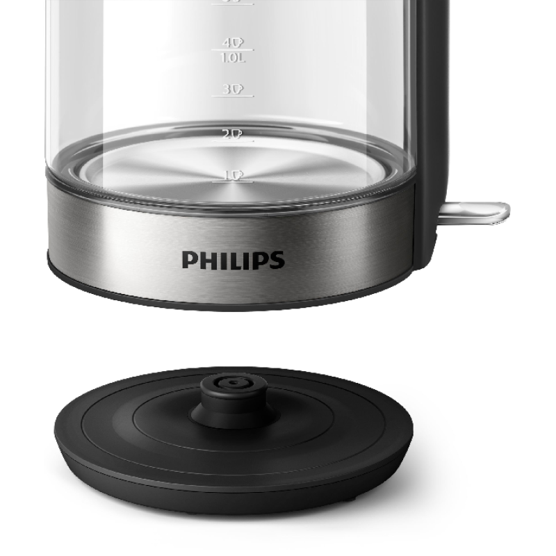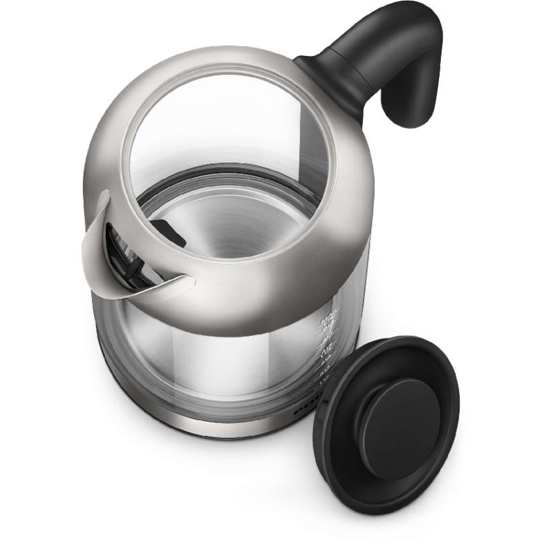 De heldere glazen voet is voorzien van een elegant en intuïtief sensorlampje, zodat u kunt zien wanneer de waterkoker is ingeschakeld.