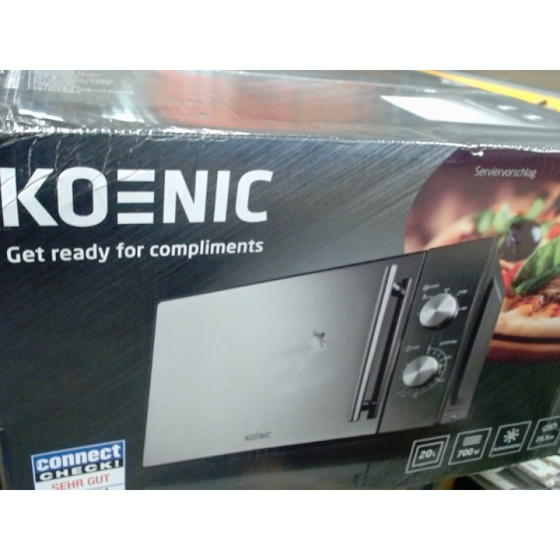 Koenic heeft bij het maken van de KMW1221B met alles rekening gehouden. Zo heeft de microgolfoven niet alleen een elegant design, maar is hij ook compact. Met zijn afmetingen van 258 op 440 op 335 mm past hij in elke keuken. Dankzij het lichtgewicht van 11,4 kg verplaats je hem dan weer moeiteloos. Zet de KMW1221B dus gerust in een hoekje van de keuken en maak er gebruik van wanneer je hem nodig hebt.