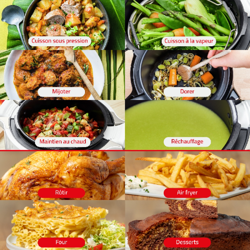 De Cookeo+ Extra Crisp multicooker + airfryer van Moulinex in wit en zilver brengt veelzijdigheid naar je keuken. Met een ruime inhoud van 6 liter en een vermogen van 1 600 watt bereid je alles van stoofpotten tot knapperige frietjes. Dankzij de 10 automatische programma’s en de gebruiksvriendelijke draaiknop met display kies je eenvoudig de juiste instellingen. De keramische kom verdeelt de warmte gelijkmatig voor een optimaal kookresultaat, terwijl het Extra Crisp-accessoire zorgt voor een goudbruine afwerking. De warmhoud- en timerfunctie maken koken nog handiger, en via de bijbehorende app ontdek je meer dan 180 inspirerende recepten. De Moulinex Cookeo+ is vaatwasbestendig en ontworpen voor dagelijks gebruik met een strak wit-zilveren design dat in elke keuken past.