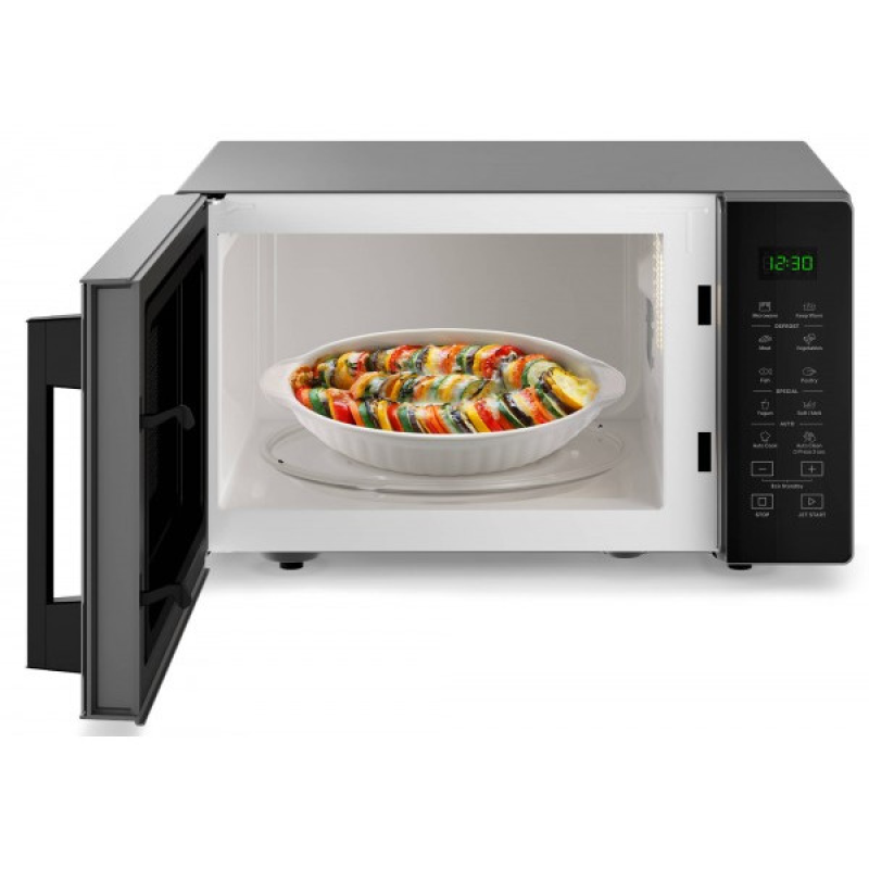 Met een vermogen van 900 watt zorgt deze magnetron ervoor dat gerechten snel en gelijkmatig worden bereid en opgewarmd. De 7 voorgeprogrammeerde programma's bieden instellingen voor vlees, vis, groenten en gevogelte, zodat je gemakkelijk en gevarieerde gerechten kunt bereiden. Daarnaast beschikt het apparaat over een DoughRising-functie voor het laten rijzen van deeg, een Yoghurt-functie voor zelfgemaakte zuivel en een warmhoudfunctie. Deze extra functies maken de magnetron geschikt voor uiteenlopende dagelijkse toepassingen.