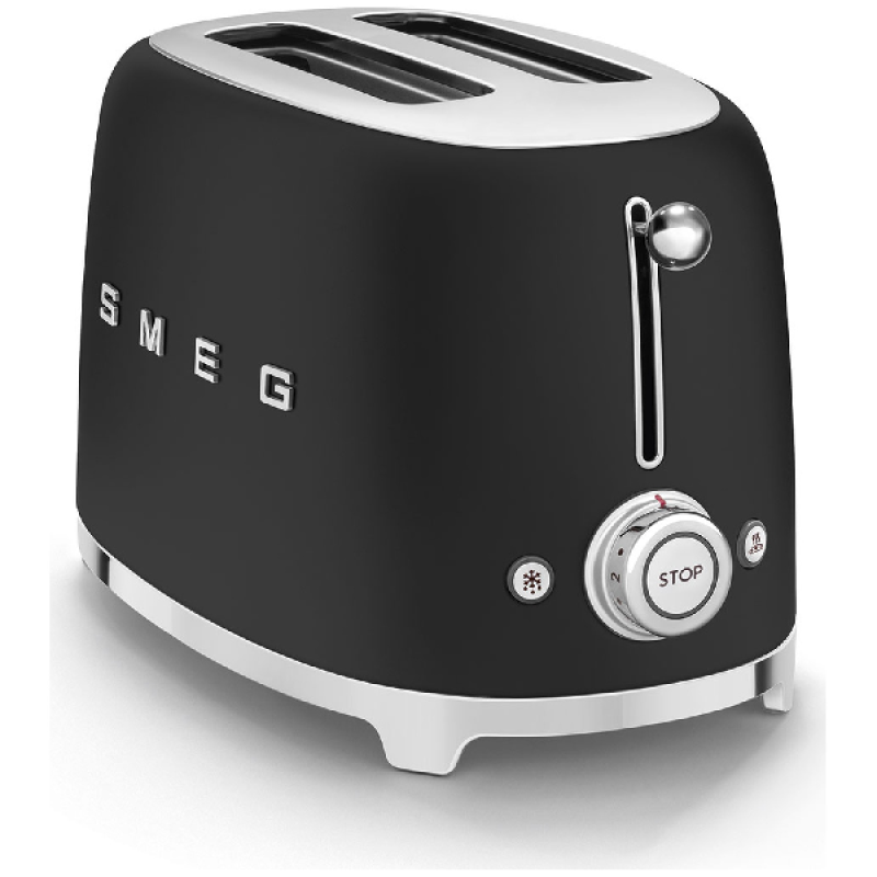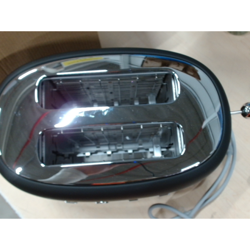 Trefwoorden Broodrooster, retro, Smeg, jaren 50, matzwart, 2-sneetjes, automatisch centreren, kruimellade