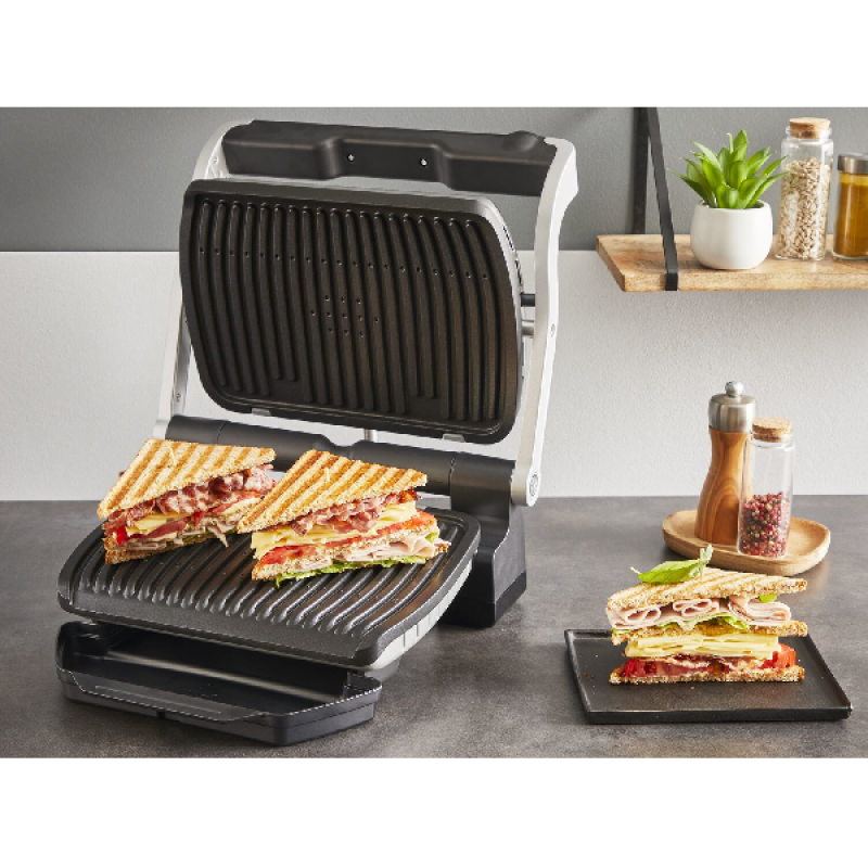 De OptiGrill+ levert met zijn maximaal vermogen van 2000 watt een krachtige grill waarmee je moeiteloos je favoriete gerechten klaarmaakt. Dankzij het ruimte grilloppervlak van 30 x 20 cm geniet het hele gezin keer op keer van perfect gegaarde biefstuk of groenten. Het apparaat beschikt ook over een praktische uitneembare lekbak voor het opvangen van vleesjus en vet. Met deze Tefal-grill bereid je in een handomdraai smakelijke stukken vlees, kebabs en panini's voor het hele gezin.