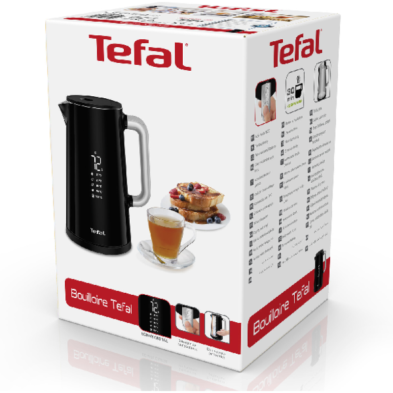 _De elektrische waterkoker van Tefal maakt het mogelijk. Deze moderne, intuïtieve elektrische waterkoker is net zo geavanceerd als hij stijlvol is. Het minimalistische digitale scherm laat in realtime de temperatuur van het water in de waterkoker zien. Hij heeft vijf standen voor verschillende instellingen van 40 °C tot wel 100 °C — verwarm water met één druk op de knop.