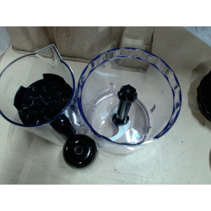 Met deze zwarte Philips staafmixer- hakmolen- en spiralizer heb je een complete set keukengerei in handen. Op de mixerbehuizing met motor passen alle accessoires om alle ingrediënten die je maar wilt te mixen, malen, hakken en raspen. Met de hakarm kun je moeiteloos groenten fijnmalen om soepen te maken en elk ander mengsel mengen om quiches en taarten te bereiden. Met de garde klop je eiwitten op en met de minihakmolen en de meegeleverde raspen kun je allerlei groeten en kruiden fijnhakken en raspen. De staafmixer heeft een ergonomisch ontwerp en ligt perfect in de hand. Dankzij het maximale vermogen van 1.200 watt draait hij met gemak de 2 versnippersnelheden. Alle accessoires zijn vaatwasmachinebestendig voor een eenvoudige reiniging.