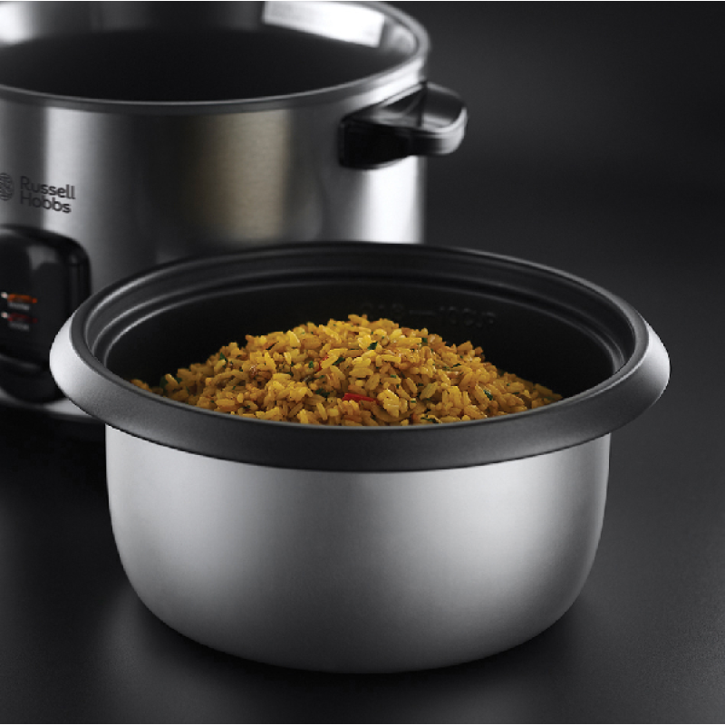 Russel Hobbs heeft dit apparaat ontworpen met het oog op eenvoud: ontwerp, constructie, bediening en onderhoud komen allemaal aan bod. Deze rijstkoker bestaat uit 4 essentiële elementen: een roestvrijstalen buitenkant, een rijstkookpan, een stoommandje en een transparant deksel. Hij wordt geleverd met 2 praktische accessoires: een houten spatel en een maatbeker om altijd de juiste hoeveelheid rijst te bereiden. De schaal en het kookmandje zijn gemakkelijk te reinigen onder stromend water.