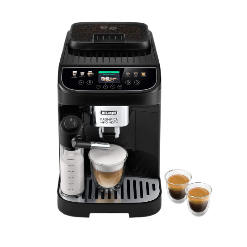 Deze De’Longhi Magnifica Evo Next ECAM310.60.B in zwarte uitvoering is een volautomatische espressomachine met 2-kops-functie die naadloos in elke moderne keuken past. Met zijn afmetingen van 24 x 44 x 36 cm (B/D/H) en een gewicht van 9,6 kilo is het een solide apparaat dat stabiliteit biedt tijdens het zetten van je koffie. Het 2,4-inch-TFT-kleurenscherm met 6 soft-touch knoppen en gekleurde pictogrammen zorgt voor een gebruiksvriendelijke en intuïtieve bediening, waardoor je eenvoudig je gewenste drank selecteert. Tot slot beschikt de koffiemachine over een bonenreservoir van 250 gram en een waterreservoir van 1,9 liter, beide eenvoudig bereikbaar en ruim genoeg voor meerdere kopjes koffie zonder vaak te hoeven bijvullen.