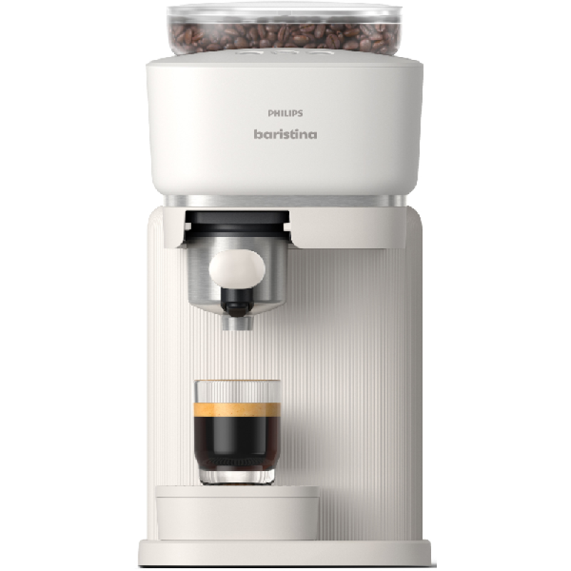 Deze kleine, witte Baristina BAR300/60 halfautomatische espressomachine van Philips is compact maar krachtig. Je maakt er in een handomdraai espresso's mee die hun naam waardig zijn, met versgemalen bonen voor intensere smaken.