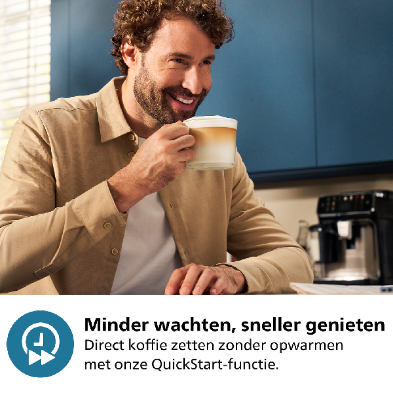 Je hoeft geen professionele barista te zijn om vanuit je eigen keuken allerlei koffiedrankjes te brouwen. Met deze volautomatische machine ga je snel indruk maken op jouw vrienden door hun favoriete koffie klaar te zetten. Met 20 voorgeprogrammeerde recepten kan je in een paar klikken heerlijke kleine of grote, lattes, cappuccino's, thee en kruidenthee bereiden. Je past, indien nodig, elk recept in intensiteit, volume en temperatuur aan om de bereidingen perfect op de smaak van de drinkers aan te laten sluiten. Vul de water-, koffie- en melktanks in, selecteer je drank en laat de machine het werk doen.