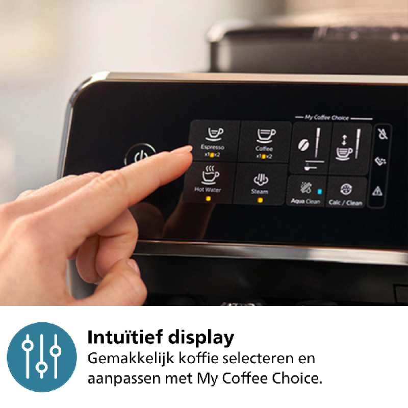 De PHILIPS Series 2200 is een slanke, matzwarte en volautomatische espressomachine met een klassieke melkopschuimer voor cappuccino en latte macchiato. Hij is uitgerust met een intuïtief touchdisplay en een automatisch ontkalkingssysteem voor onderhoudstaken.