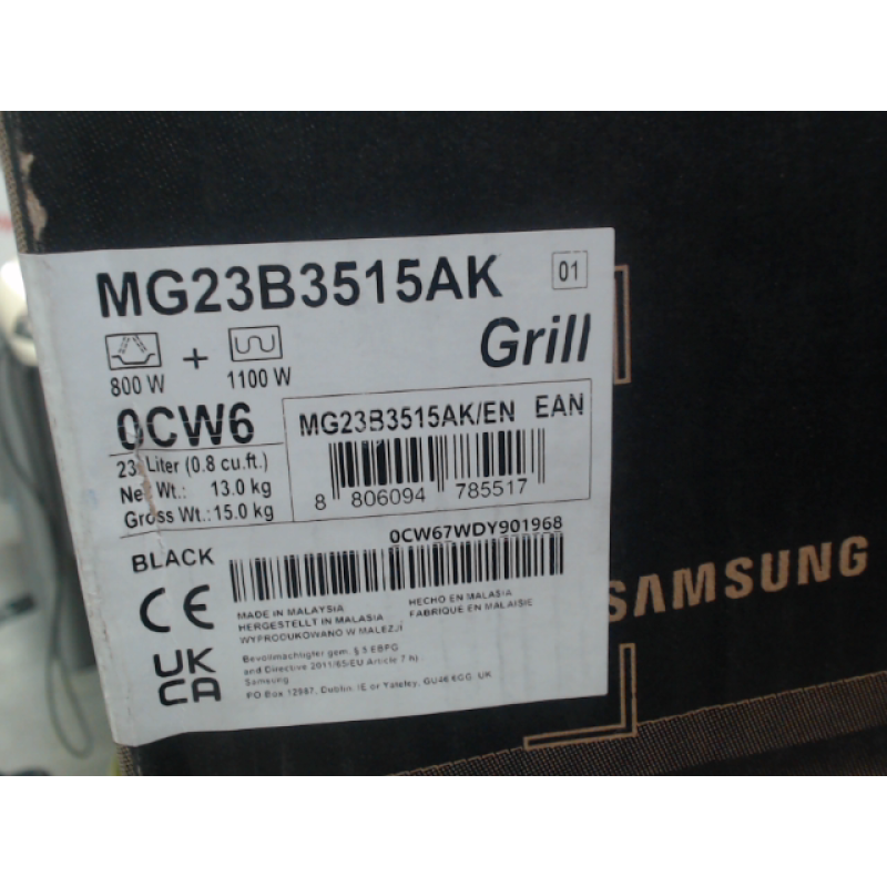 De MG23B3515AK/EN levert met zijn vermogen van 800 W steeds een snelle en gelijkmatige opwarming. Het Triple Distribution System, dat de golven door drie sleuven leidt, zorgt voor een kwalitatief resultaat. De grill beschikt dan weer over 1100 W, meer dan genoeg om die sappige steak te bakken. Ook kan je zowel de grill- als de microgolf-functie tegelijk gebruiken. Je verwarmt, dankzij de kookruimte van 23 liter, makkelijk meerdere porties. Het glazen draaiplateau biedt met zijn diameter van 288 mm genoeg ruimte voor de meest courante borden en schalen.