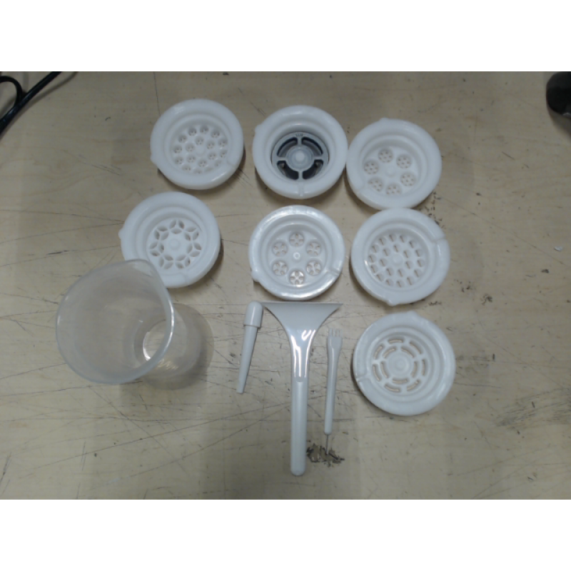 Lasagne, penne, fettuccini, spaghetti, engelenhaar, tagliatelle, pappardelle, schelpen, paccheri: al deze pastasoorten kan je maken met de 8 meegeleverde pastaschijven. Alle accessoires met antiaanbaklaag zijn vaatwasmachinebestendig, waardoor de machine gemakkelijk schoon te maken is. Naast de vormaccessoires krijg je ook een maatbeker en speciaal schoonmaakgereedschap. De machine heeft een praktisch opbergvak om alle vormschijven netjes op te bergen. Hij werkt op netstroom en heeft 200 watt vermogen.