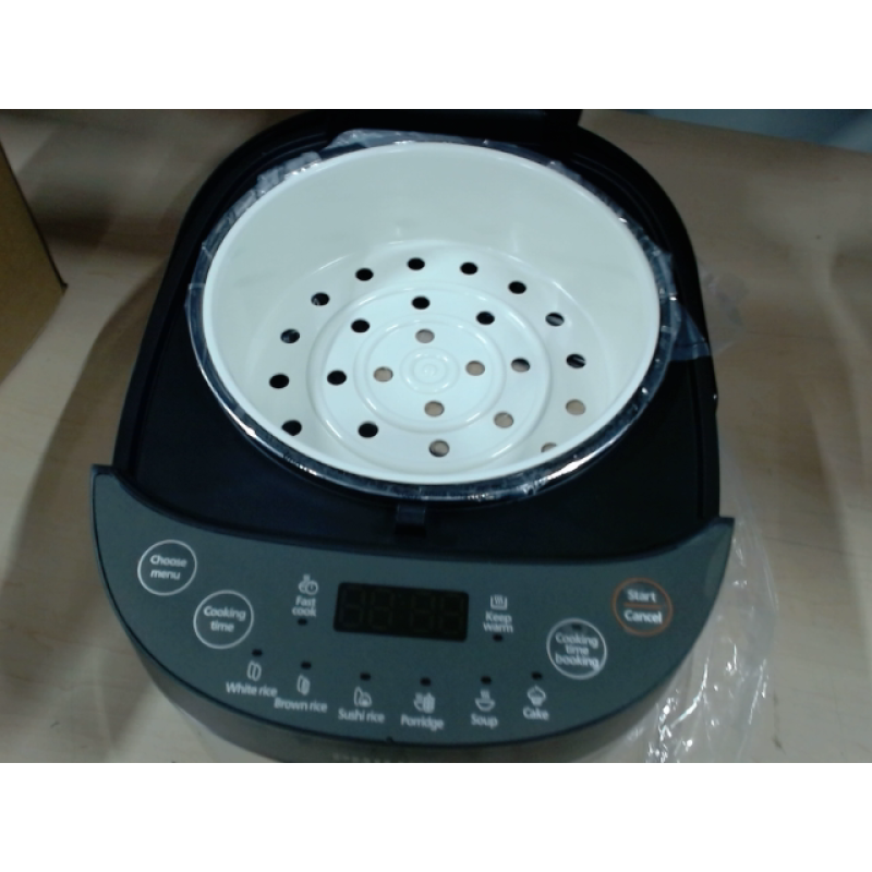 Met deze rijstkoker van Philips in zwart en zilver kook je rijst met gemak tot in de perfectie. Hij heeft verschillende kookstanden, afhankelijk van wat je precies wilt koken (witte rijst, bruine rijst, sushirijst, havermout) en je kunt er zelfs soepen en cupcakes mee maken. Je kunt het apparaat in een paar klikken instellen op het digitale bedieningsscherm. Hij heeft 600 watt vermogen, een 80 cm lang netsnoer en een warmhoudfunctie. Met zijn bescheiden afmetingen van 20 x 25 x 37 cm kun je hem op je werkblad zetten en opbergen zoals je wilt. Het rijstmandje, de maatbeker, de lepel en het stoommandje zijn vaatwasmachinebestendig.