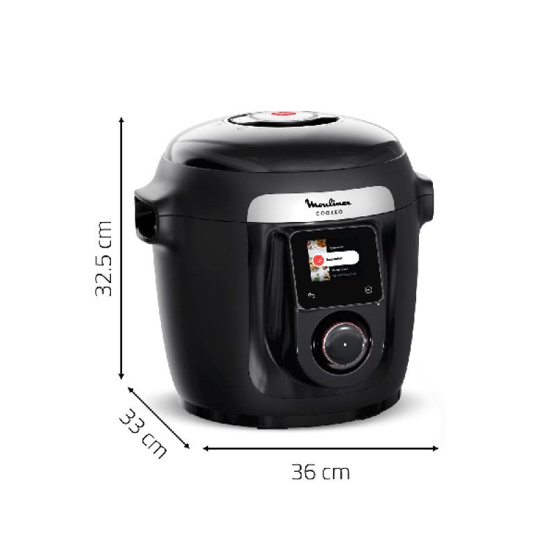 De Cookeo wifi is de snelste multicooker van Moulinex, waarmee je kan koken, stomen en sudderen. Met zijn ronde vorm en afmetingen van 33 x 36 x 32,5 cm vindt hij gemakkelijk een plekje op je keukenblad. Hij heeft een antiaanbak-mengkom met een inhoud van 6 liter, zodat je grote porties kunt bereiden voor 2 tot 6 personen. Met 1600 watt vermogen warmt hij snel op, en verbruikt hij toch 80% minder elektriciteit dan conventioneel koken. Dit model heeft ook een praktisch stoommandje om groenten gezond te stomen.