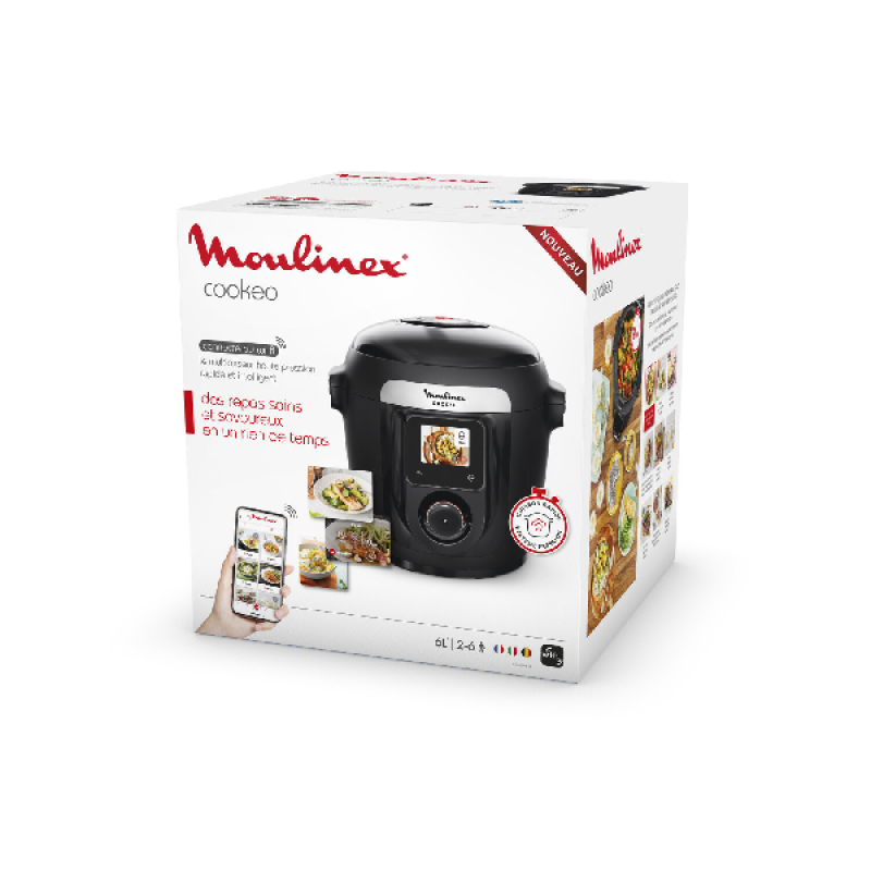 Op het apparaat zijn 150 recepten opgeslagen, maar op de MyMoulinex-app zijn de kookideeën onbeperkt. Je voert de ingrediënten in die je in de koelkast hebt liggen en de app stelt recepten voor. Je selecteert het recept dat het beste bij je past en gebruikt de wifi-verbinding om het recept naar het apparaat te sturen. Daarna hoef je alleen nog maar de instructies te volgen om het in een paar stappen klaar te maken. De Cookeo biedt een aantal kookstanden, waaronder stomen, bruinen, langzaam koken en sudderen, maar je kunt er ook yoghurt mee bereiden, warm houden en opwarmen. Met het apart verkrijgbare Extra Crisp-deksel kun je de multicooker als airfryer gebruiken voor gezonde, smakelijke maaltijden.