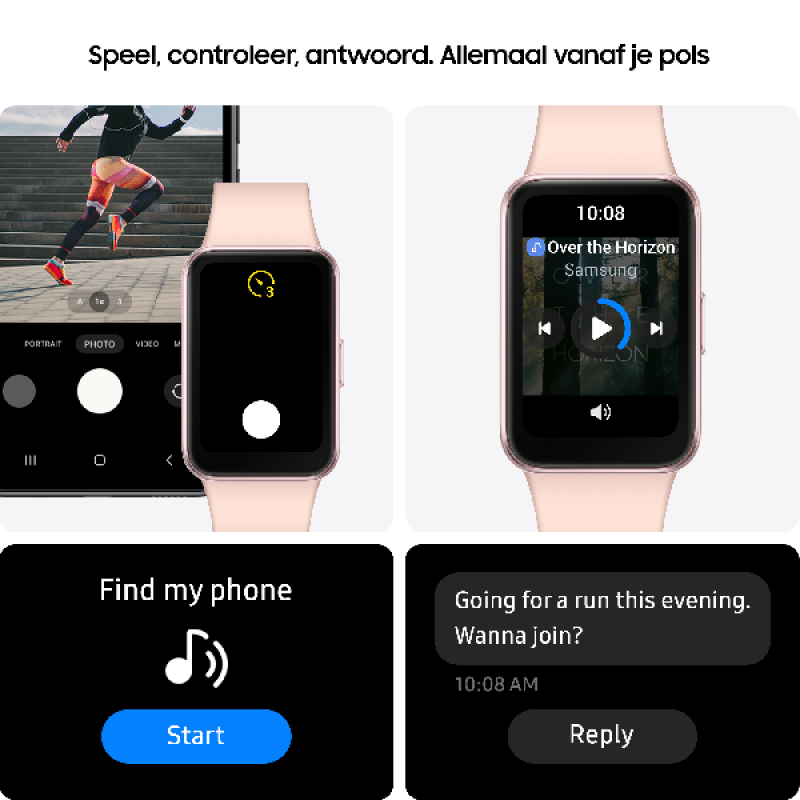 De Galaxy Fit 3 is ontworpen met gebruiksgemak in gedachten. Het intuïtieve touchscreen en de eenvoudige bediening maken het navigeren door de verschillende functies een fluitje van een cent. Dankzij Bluetooth 5.3 koppel je de activity tracker moeiteloos aan je smartphone, zodat je meldingen ontvangt en je gegevens synchroniseert met de Samsung Health-app.