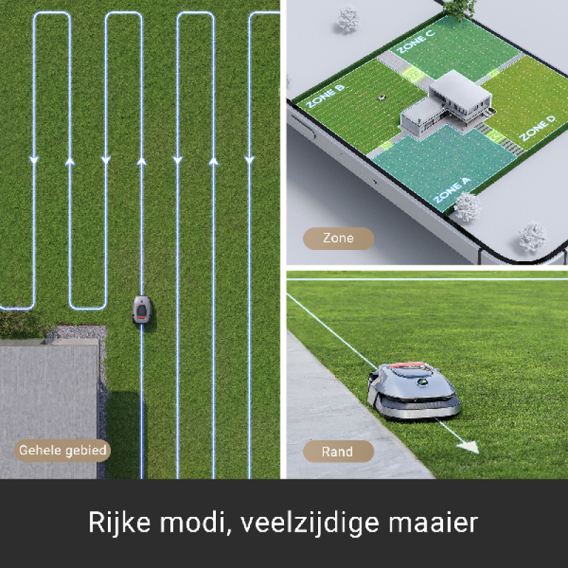 (+) U-vormige routeplanning: maait efficiënt tot 2.000 m² met een gelijkmatig resultaat.