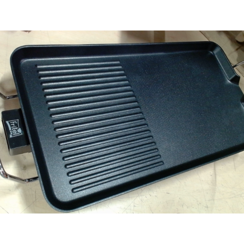 Bereid vlees en groenten die mals zijn van binnen en perfect gegrild van buiten met dit 2-in-1 grill- en teppanyaki-apparaat van Fritel. Zijn aluminium plaat van 48 x 20 cm is voorzien van een antiaanbaklaag en biedt genoeg oppervlak om verschillende gerechten tegelijk te grillen. Dankzij de thermostaat aan het uiteinde van het apparaat bepaal je in een handomdraai hoeveel vermogen je wilt. De grill wordt aangesloten op het lichtnet en heeft een snoer van 1 m lang en 1360 watt vermogen. Met dit apparaat geniet je in geen tijd van overheerlijke grillgerechten.