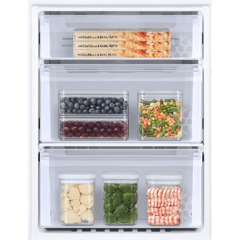 Geef jouw keuken ook die stijlvolle, minimalistische look. Deze Samsung-koelkast heeft een strak en modern design en een standaard diepte van 600 mm, die perfect aansluit bij je bestaande keukenkasten en aanrecht. De prachtige deuren zijn volledig plat en de achterkant is vlak afgewerkt, zodat je geen kabels ziet en je het gemakkelijk schoon kunt houden. Bovendien is de minimalistische binnenkant uitgerust met een verborgen display, een mooi plat flessenplateau en grijze vakken en laden *.