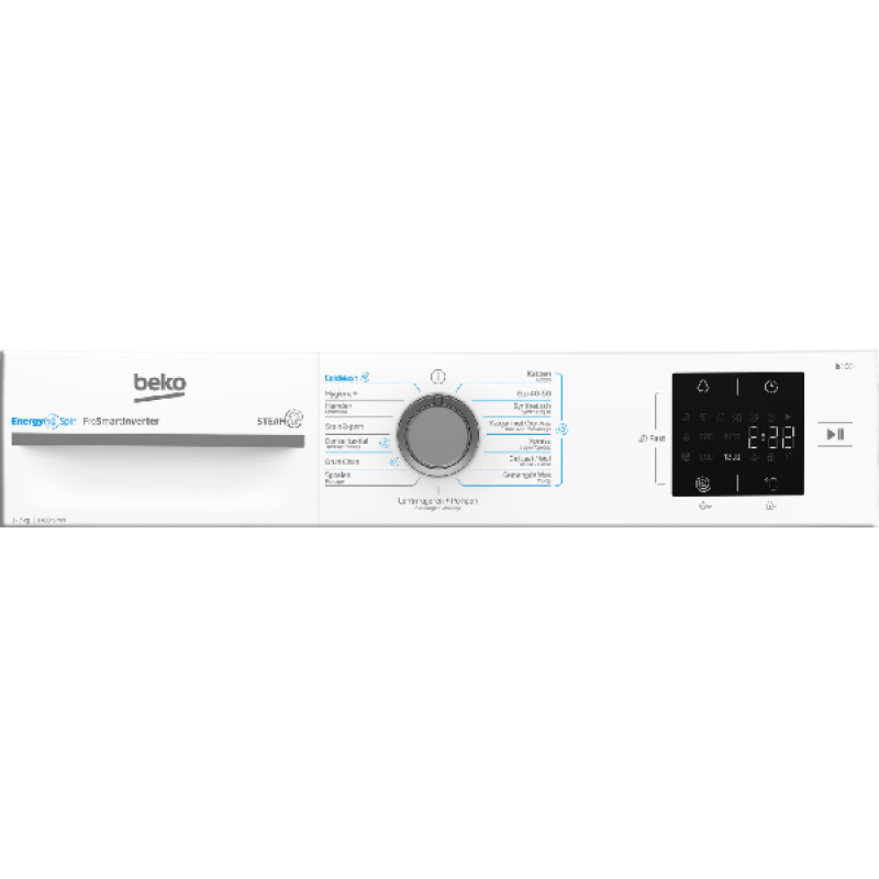 Deze witte Beko BM3WFU3741S vrijstaande voorlader wasmachine doet gegarandeerd je wasgoed schitteren. Met standaardafmetingen en een ruime trommelcapaciteit van 49 liter laadt je tot 7 kilo was per keer. Hij beschikt over maar liefst 15 verschillende wasprogramma's die aan alle soorten stoffen zijn aangepast: naast de standaardcycli voor katoen en wol beschik je ook over een eco-programma, een hygiënecyclus en nog meer. De programma’s en opties, zoals halve lading en uitgestelde start, selecteer je met de draaiknop en aanraakgevoelige toetsen aan de voorkant. Ten slotte is deze machine uitgerust met een krachtige en borstelloze ProSmart-motor die energie-optimalisatie, minder geluidsoverlast en een grotere duurzaamheid biedt. Hij heeft energieklasse A en is dus water- en energiezuinig. Dankzij het EnergySpin-systeem draait de trommel met maximaal 1400 tpm voor optimale centrifugeerprestaties.