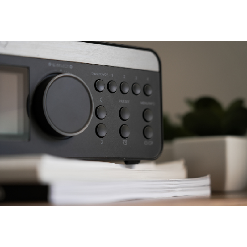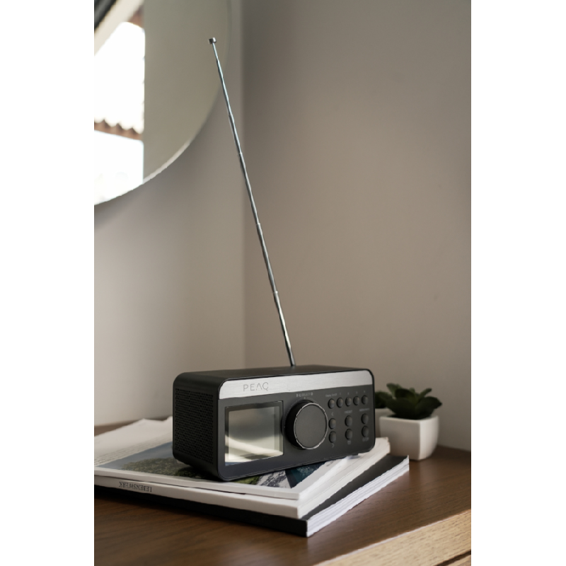 De Peaq PCR 540 DAB+ wekkerradio in zwarte uitvoering laat je ten volle genieten van muziek en digitale geluidskwaliteit. Deze wekkerradio heeft een stijlvol en strak design, en is uitgerust met een reeks handige functies en naadloze bluetoothconnectie. Dankzij het compacte formaat zet je dit apparaat in zowat elke hoek van je slaapkamer. Het apparaat is gemakkelijk te bedienen via de drukknoppen en is uitgerust met een lichtgevend led-display, zo zie je in een oogopslag de tijd en de frequentie. De wekkerradio ondersteunt zowel DAB+ als FM, zo luister je naar alle populaire zenders en heb je een ruime keuze radiostations om uit te kiezen. Verder is het apparaat voorzien van een wekfunctie, zodat je elke ochtend ontwaakt met je favoriete muziek. Ook heeft hij een timer en sluimerfunctie en zorgt zijn telescopische lens dat je op elk ogenblik profiteert van een goede ontvangst.