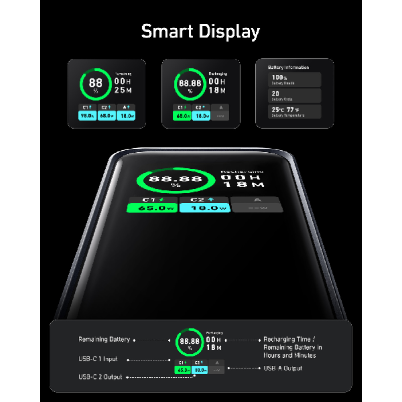 Deze zwarte Anke Prime externe batterij van Anker is groter en krachtiger dan de meeste powerbanks en heeft een capaciteit van 20.000 mAh. Hij is in 1 uur opgeladen en je kan er niet alleen je smartphone en tablet, maar ook je laptop mee opladen. Hij heeft 3 praktische uitgangspoorten, 2 USB-C en 1 USB-A, zodat je meerdere apparaten tegelijk kan opladen. Hij genereert tot 200 watt energie.