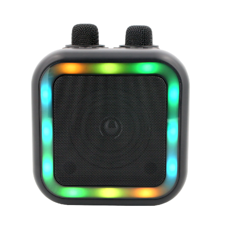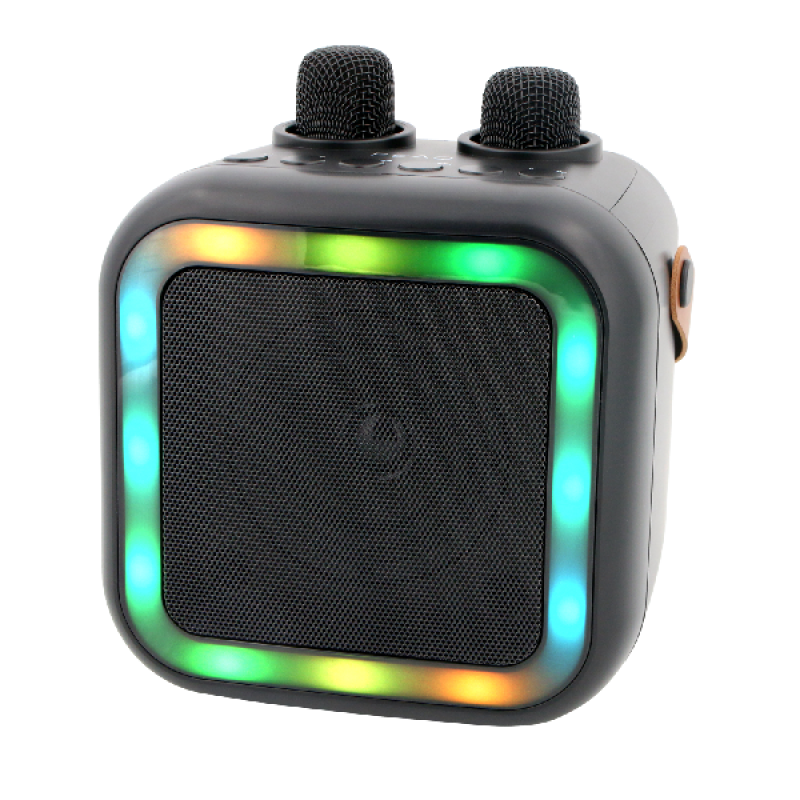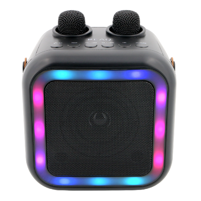 Tover elke plek om tot een concertpodium met de PEAQ PKM-100, een compacte en draagbare karaoke-machine. Dankzij de twee meegeleverde microfoons kun je in duo zingen en samen onvergetelijke feestmomenten beleven. Verbind eenvoudig je muziek via Bluetooth of USB-C en geniet van 5 uur speeltijd dankzij de oplaadbare batterij. Het elegante design en de gekleurde LED-verlichting geven je feestjes een extra feestelijke touch. Lichtgewicht en eenvoudig mee te nemen, is de PKM-100 ideaal voor feestjes, verjaardagen of gezellige momenten thuis.
