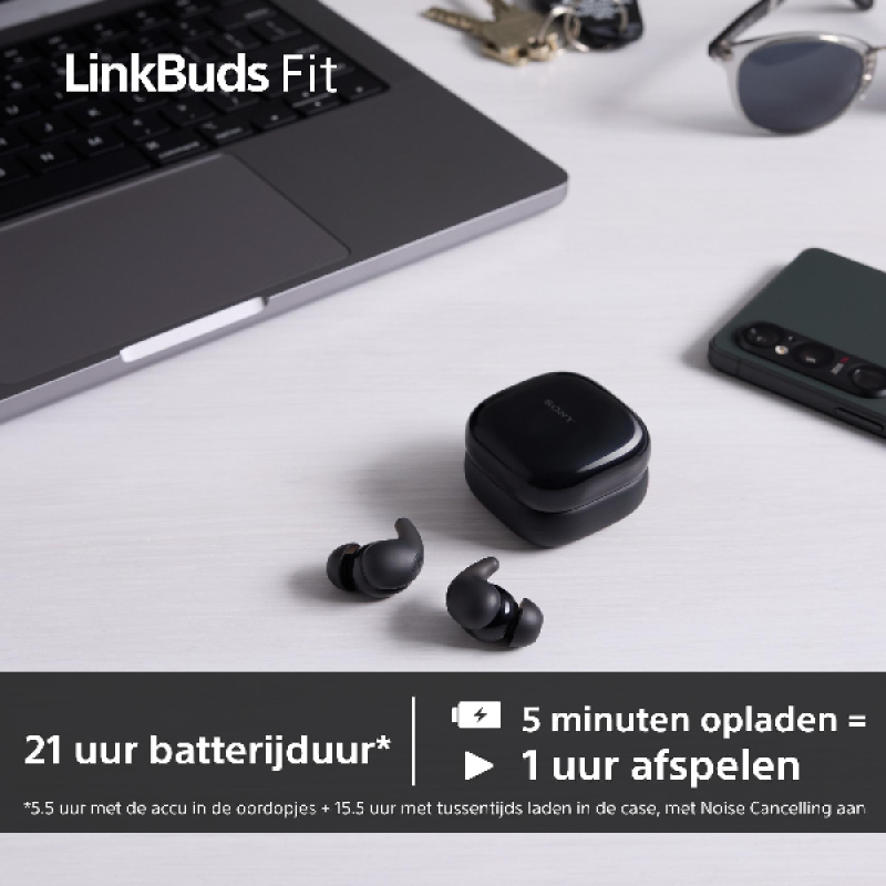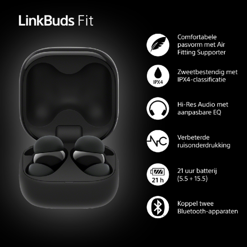 Met de Sony LinkBuds Fit true wireless noise cancelling bluetooth oordopjes in zwarte uitvoering breng je de hele dag comfortabel door, of je nu een boek leest of gaat sporten. Activeer de ruisonderdrukking om de buitenwereld te blokkeren en volop van je muziek te genieten of laat selectief omgevingsgeluiden door om aandachtig te blijven voor drukke omgevingen. De oortjes zijn weerbestendig, makkelijk te bedienen en bieden een lange batterijduur.