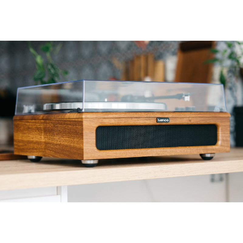 Met de instelbare snelheid kun je kiezen tussen 33 en 45 rpm en kun je eenvoudig singles en lp's spelen. De LS-410 is een riem aangedreven platenspeler en voorzien van een hoogwaardige Audio-Technica cartridge hierdoor is de audio kwaliteit optimaal en blijft de LP langer in goede conditie. Met de start-stop knop kun je op elk gewenst moment de plaat even stoppen en even later gewoon weer doorgaan waar je gebleven was. De kunststoffen stofkap zorgt ervoor dat jouw platenspeler niet onder een laagje stof verdwijnt. De Lenco LS-410, is afgewerkt met een mooi walnoten hout.
