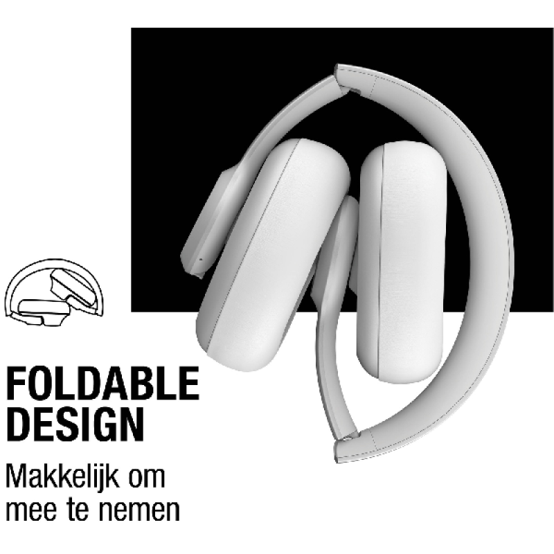 Deze draadloze over-ear hoofdtelefoon is bijzonder comfortabel om te dragen. Zijn siliconen hoofdband en zachte vegan lederen oorkussens nemen vocht op zodat je hem de hele dag ongehinderd kunt dragen. Het handige design zorgt daarnaast dat je hem kunt opvouwen en gemakkelijk kunt opbergen in je tas als je deze even niet meer nodig hebt. Het apparaat maakt gebruik van Bluetooth 5.2 om draadloos verbinding te maken met je device. Het is voorzien van een volumewieltje waarmee je eenvoudig het geluidsniveau kunt regelen. Met de intuïtieve knop aan de voorkant van de oorschelp kun je het afspelen regelen en je spraakassistent activeren.