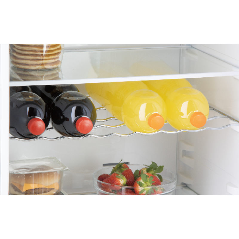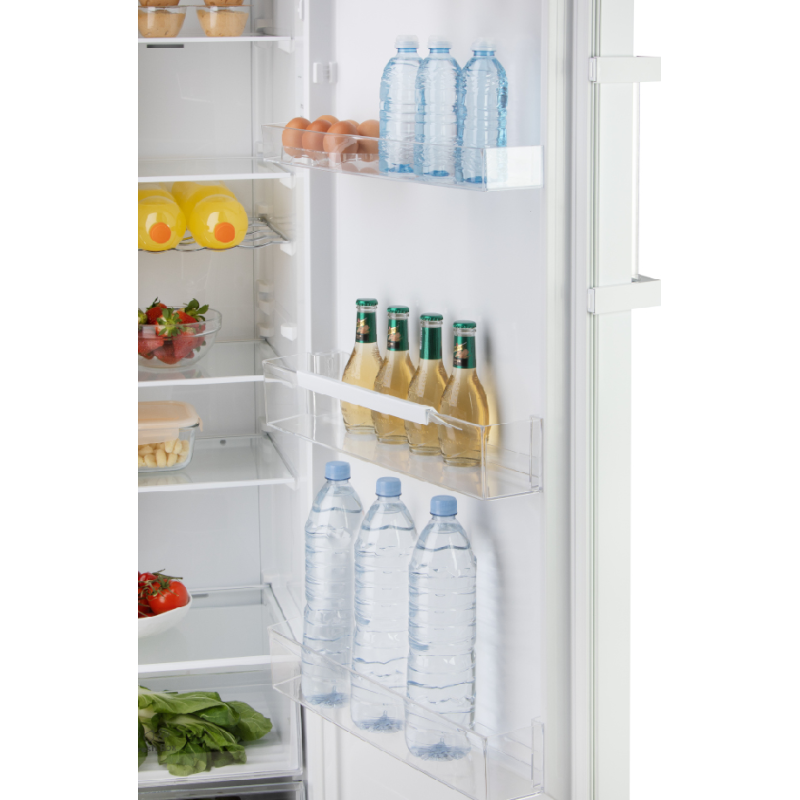 De koelkast heeft een inhoud van 322 liter, wat ruim voldoende is voor al jouw verse voedingswaren. Binnenin heeft hij 5 glazen legplateaus en 2 vershoudlades onderaan, plus 4 bakken in de deur voor flessen, blikjes en potten. De legplateaus zijn eenvoudig te verwijderen indien je meer ruimte nodig hebt voor grote producten. Verder kan je op het handige flessenrek tot 5 grote flessen kwijt, zodat je steeds gekoelde dranken tot je beschikking hebt. De bediening verloopt via het gebruiksvriendelijk display met elektronische temperatuurregeling dat zich binnenin het toestel bevindt.