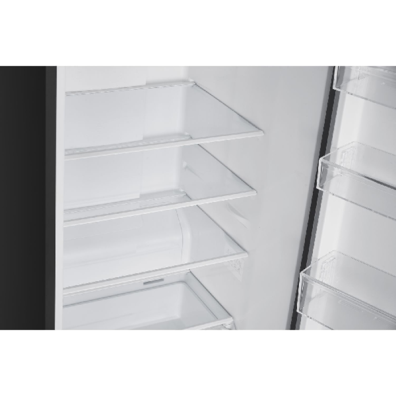 Om je voedsel efficiënt op te bergen, beschikt deze koelkast over 3 transparante lades in het onderste gedeelte, waarvan er 2 extra groot zijn om fruit, groenten, vlees en vis langer te bewaren. Het bovenste gedeelte heeft 4 stevige glazen legplateaus, waarvan er één in hoogte verstelbaar is. Dit maakt het gemakkelijk om het voedsel in je koelkast te organiseren, zodat je altijd snel kan pakken wat je nodig hebt. Er zijn verder 4 praktische bakken in de deur voor het bewaren van flessen, blikjes en kleine potjes.