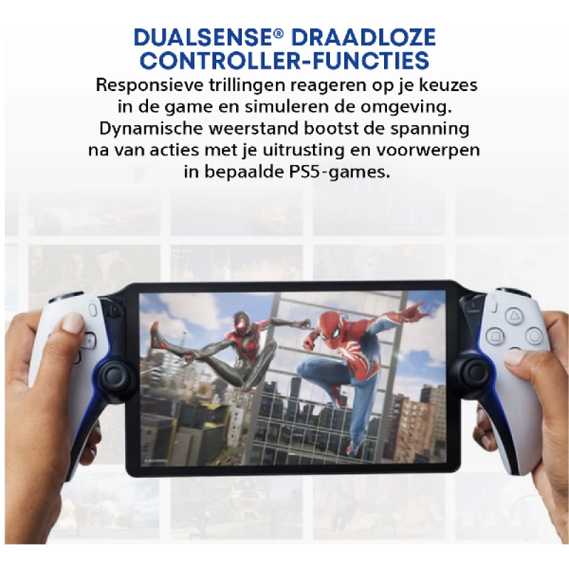 Met deze gaming-console speel je games op hoge resolutie, hij beschikt namelijk over een prachtig 8 inch (20,3 cm) Full HD-scherm dat games op 60 fps afspeelt. Met een resolutie tot 1080p krijg je elke game zeer gedetailleerd en haarscherp te zien. Deze console is ook voorzien van haptische feedback en de adaptieve triggers waar de PS5 voor gekend staat. Zijn gerenommeerde DualSense-controllers bezorgen je steeds een realistische game-ervaring. Het apparaat heeft ook ingebouwde stereoluidsprekers, en als je buitenshuis bent, kun je hem ook koppelen met de apart verkrijgbare PS5 Pulse Explore-draadloze oortjes.