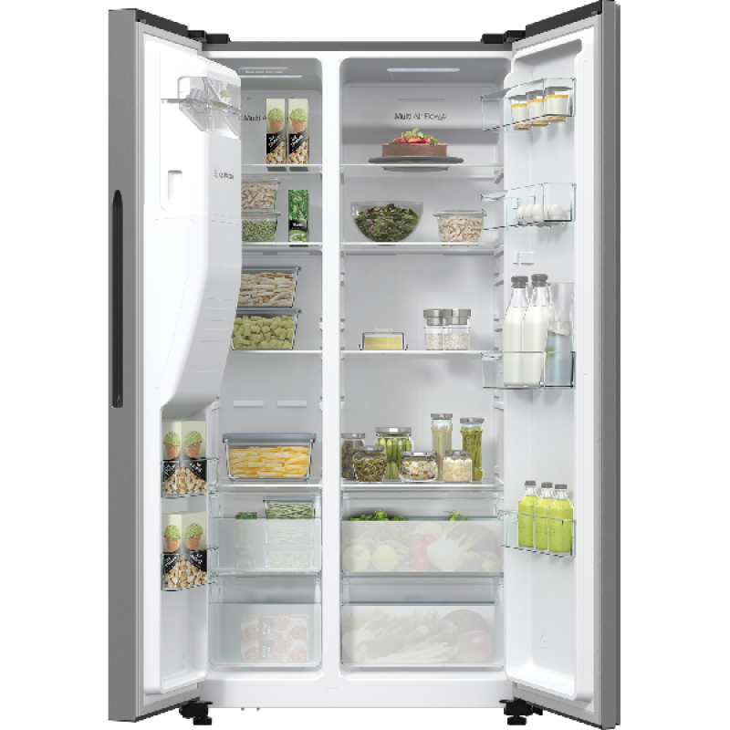 De Hisense RS5P535NPCE is uitgerust met Dual Tech Cooling: 2 gescheiden koelsystemen die het koel- en vriesgedeelte onafhankelijk van elkaar regelen. Zo blijft de luchtvochtigheid optimaal en blijven geur- en smaakoverdracht achterwege. Met een geluidsniveau van slechts 36 dB draait deze koelkast bijna geruisloos, zelfs tijdens piekbelasting.