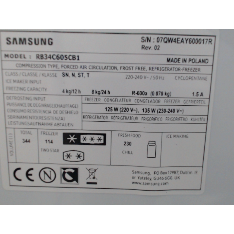 SAMSUNG RB34C605CB1 - Koelvriescombinatie - breedte 59.5 cm - hoogte 185.3 cm - NoFrost