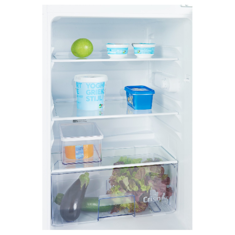 Deze klein koelkast heeft één compartiment met een volume van 126 liter. Binnenin beschikt hij over 3 ultrabestendige glazen leggers, waarvan 2 in hoogte verstelbare zijn. Ze zijn beter bestand tegen barsten en krassen dan onbehandeld glas, zodat je zware voorwerpen kan opbergen zonder het risico te lopen dat ze breken of barsten. Op de bodem van de koelkast bevindt zich een vershoudlade, ideaal voor het bewaren van groenten en fruit. De deur bevat 3 bakken voor een optimale organisatie van al je blikjes, potten en flessen.