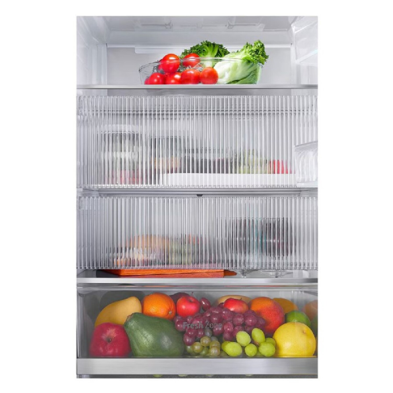 LG heeft deze koel-vriescombinatie uitgerust met Total No Frost-technologie, die ijsvorming op de wanden vermindert en handmatig ontdooien overbodig maakt. Deze technologie werkt nauw samen met het Multi Air Flow-systeem, dat koude lucht via meerdere ventilatieopeningen gelijkmatig door de hele koelkast verspreidt. Doordat de lucht continu circuleert en vrij blijft van vocht, blijft de temperatuur overal constant en de luchtvochtigheid onder controle. Zo bewaar je je verse producten langer in optimale conditie, zonder rijp of temperatuurverschillen op de diverse planken.