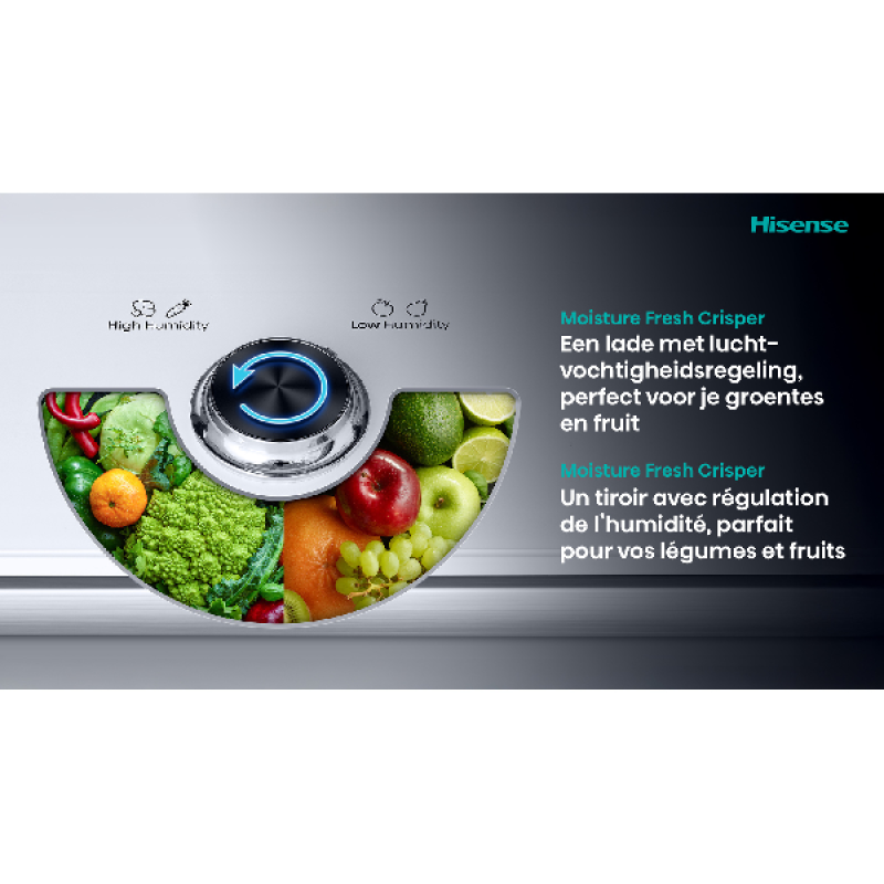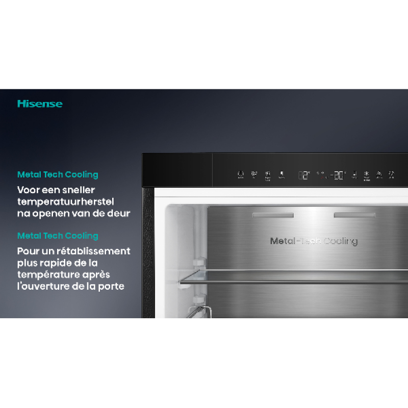 Deze koel-vriescombinatie is uitgerust met een gebruiksvriendelijk en overzichtelijk led-display waarmee je eenvoudig de temperatuur instelt. Het Multi Air Flow-systeem verspreidt koude lucht gelijkmatig door de hele koelkast, zodat je eten op elk schap langer vers blijft. Verder is deze Hisense-koelkast voorzien van een 0° Cooling Plus-zone. Hier bewaar je vlees en vis extra koel, onder de juiste omstandigheden en met behoud van kwaliteit.