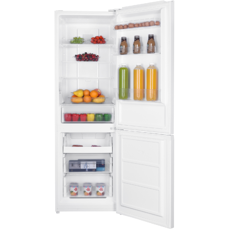 De witte koelkast met vriesvak OFK 611-1 van OK is een praktisch en ruim apparaat dat gemakkelijk een plekje vindt in je keuken. Met zijn standaardafmetingen (58 x 185,8 x 59,7 cm) kan hij vrijstaand worden geplaatst en beschikt hij over een vriesruimte van 83 l waarin je ijs en diepvriesgroenten kunt bewaren, en een koelruimte van 210 l. Dankzij de 3 verstelbare legplanken in het vriesgedeelte en de legplanken in de deur heb je voldoende ruimte om je verse levensmiddelen, potjes en flessen op te bergen en ze naar wens te ordenen. Bij stroomuitval houdt deze koel-vriescombinatie je levensmiddelen 8,5 uur lang koel.