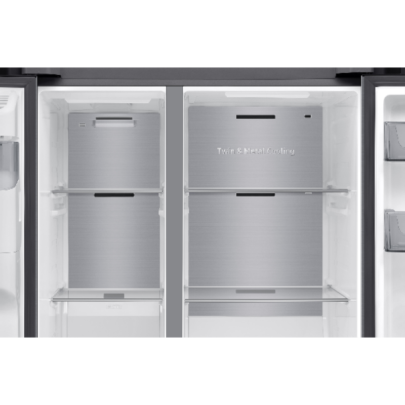 Samsung heeft deze koelkast uitgerust met een aantal innovatieve technologieën zoals AI Hybrid Cooling en Twin Cooling Plus voor een optimale temperatuurregeling. Bovendien zorgt All Around Cooling voor een gelijkmatige verdeling van koudelucht over de compartimenten, om alle etenswaren op de juiste temperatuur te bewaren. Bovendien kan je het energieverbruik van je koelkast regelen door de AI Energy-modus te activeren en door de compressor op intelligente wijze aan te passen aan je gebruiksgewoonten, om energie te besparen.