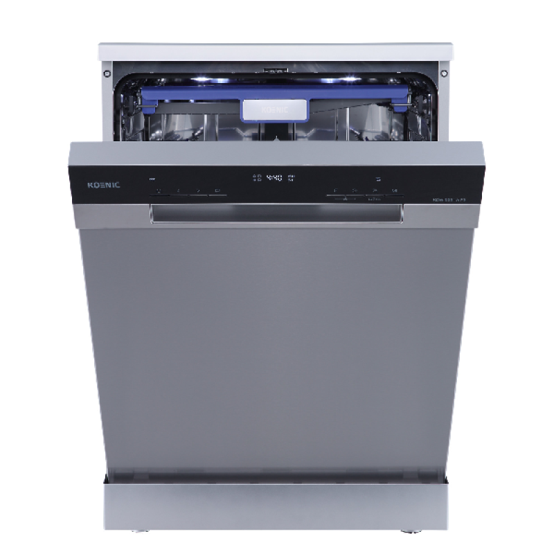 Deze KDW 6021 vaatwasser van Koenic met zijn roestvrijstaal afwerking en standaardafmetingen is eenvoudig vrijstaand in elke keuken te installeren. Hij heeft een capaciteit van 14 couverts en is daarmee ideaal voor grotere huishoudens van 4 tot 6 personen. Het beschikt over 3 praktische opbergladen voor optimale organisatie van je servies. De bovenste lade is geschikt voor het opbergen van de bestek en de 2e lade voor glazen en kopjes is indien nodig in hoogte verstelbaar. De onderste korf voor het opbergen van borden en pannen is flexibel met neerklapbare pieken en een uitneembare bestekmandje. De 7 beschikbare programma's maken alles van delicaat glaswerk tot grote borden even schoon. De vaatwasser heeft ook veel praktische functie om je vaat optimaal te reinigen. Het aanraakgevoelige bedieningspaneel aan de voorkant van de deur laat je altijd de status van de cyclus zien. Bovendien met zijn B energielabel, levert deze vaatwasser uitstekende prestaties.