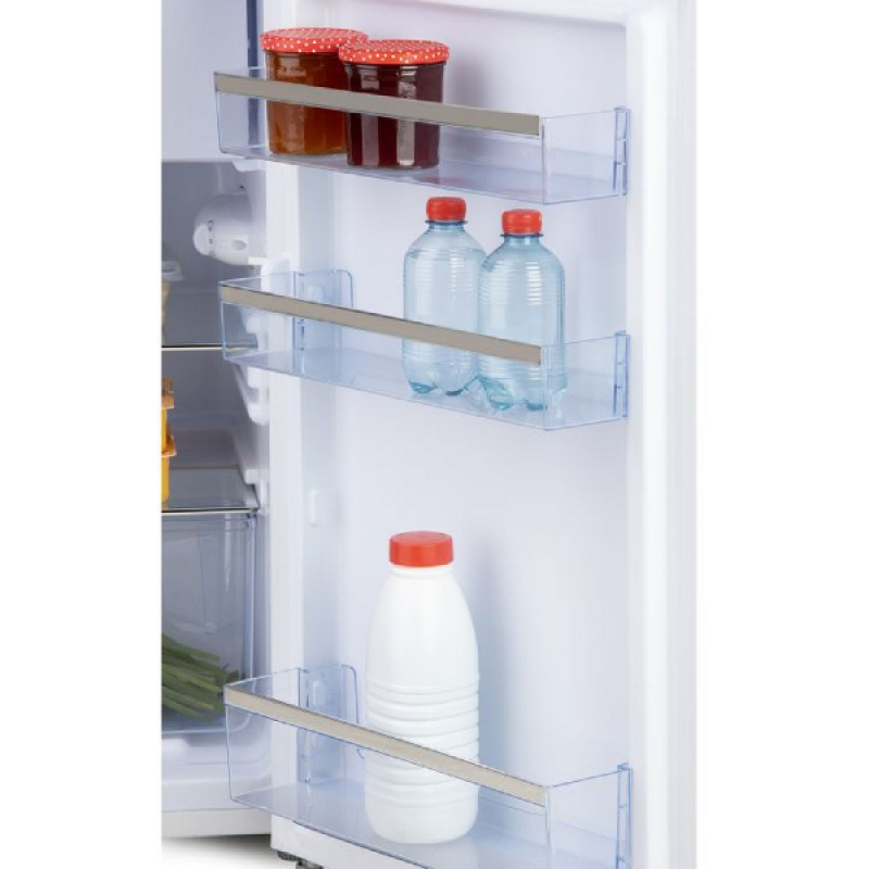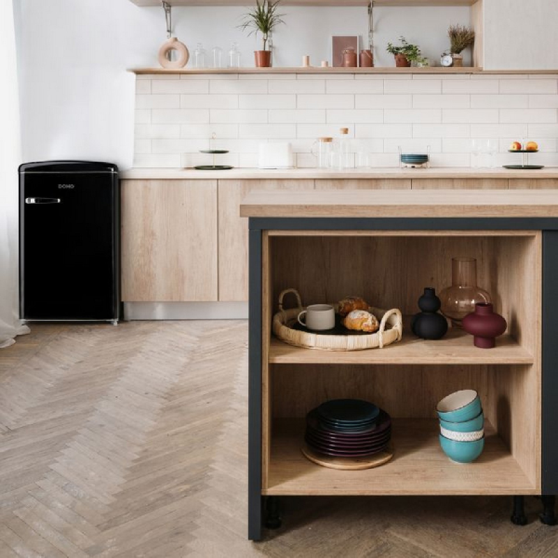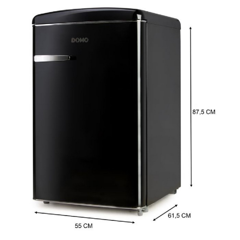 Je etenswaren koel en vers houden? Kies dan voor DO91702R van DOMO. Deze retrokoelkast heeft een totale inhoud van 108 liter, ingedeeld in een koelgedeelte en een 3-sterren vriesvak. Het vak van 13 liter is perfect voor het bewaren van ijsjes, diepvriesgroenten of het maken van ijsblokjes. Het koelgedeelte van 95 liter bestaat uit 2 glazen leggers, een groentelade en 3 deurvakken. De zwarte koelkast is met zijn klasse D energiezuinig en dus naast een mooie look, ook mooi voor je portefeuille.