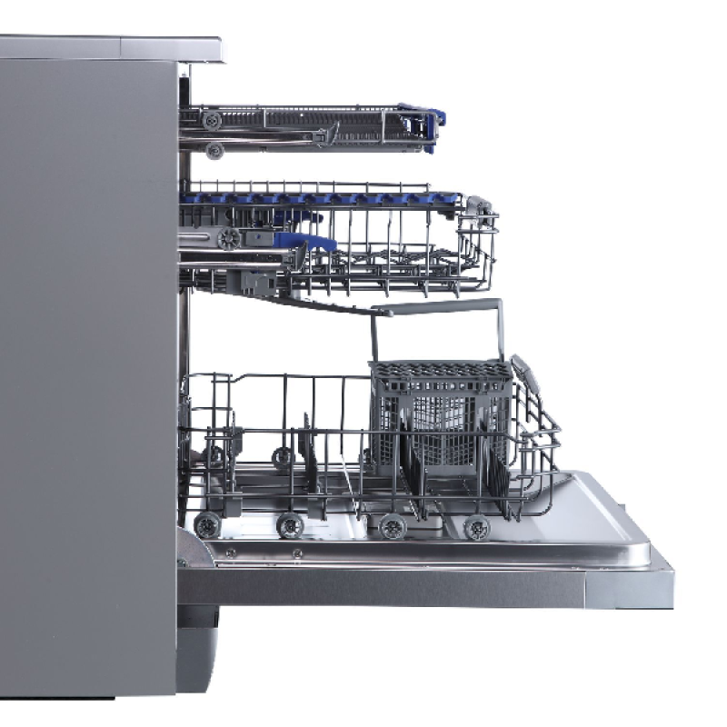 Deze KDW 6021 vaatwasser van Koenic met zijn roestvrijstaal afwerking en standaardafmetingen is eenvoudig vrijstaand in elke keuken te installeren. Hij heeft een capaciteit van 14 couverts en is daarmee ideaal voor grotere huishoudens van 4 tot 6 personen. Het beschikt over 3 praktische opbergladen voor optimale organisatie van je servies. De bovenste lade is geschikt voor het opbergen van de bestek en de 2e lade voor glazen en kopjes is indien nodig in hoogte verstelbaar. De onderste korf voor het opbergen van borden en pannen is flexibel met neerklapbare pieken en een uitneembare bestekmandje. De 7 beschikbare programma's maken alles even schoon: van delicaat glaswerk tot grote borden. De vaatwasser heeft ook veel praktische functie om je vaat optimaal te reinigen. Het aanraakgevoelige bedieningspaneel aan de voorkant van de deur laat je altijd de status van de cyclus zien. Bovendien met zijn B energielabel, levert deze vaatwasser uitstekende prestaties.