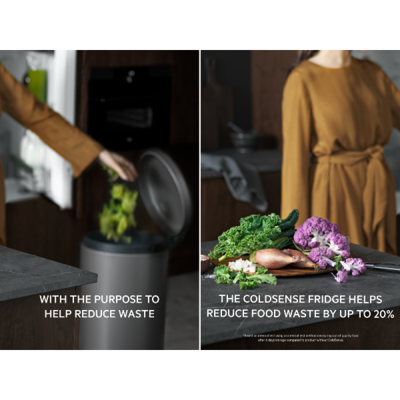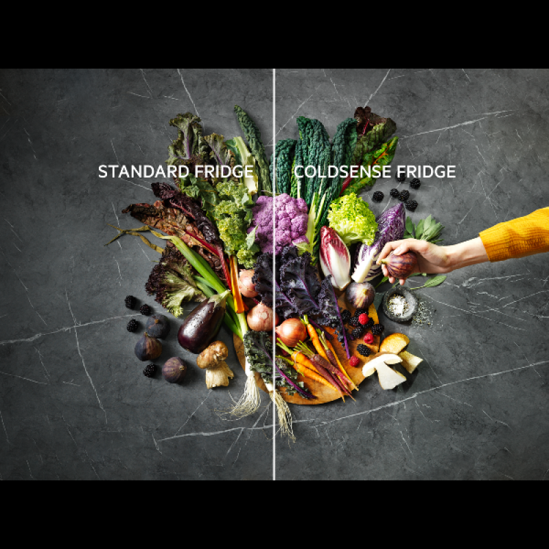 Een ruime groentelade over de volle breedte, ontworpen om alles wat je koopt te bewaren. Zelfs onregelmatig gevormde, langere groenten passen nu gemakkelijk. Van komkommers tot selderij, alles past in deze groentelade.