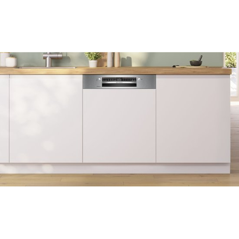 Deze SMI4ECS28E inbouwvaatwasser van Bosch van de Serie 4 past met zijn standaardafmetingen discreet in elke inbouwkeuken. Hij heeft een capaciteit van 14 couverts en is daarmee ideaal voor grotere huishoudens. Hij beschikt over 3 praktische VarioFlex-opberglades voor een optimale organisatie van je servies. De bovenste lade biedt efficiënte opbergruimte voor bestek, de 2de lade voor glazen en kopjes is, indien nodig, in hoogte verstelbaar en de flexibele onderste lade is geschikt voor borden, pannen en grotere schalen. De 6 beschikbare programma’s met 5 temperatuurniveaus - van 45 °C tot 70 °C - maken alles even proper, van delicaat glaswerk tot grote borden. Je selecteert het programma van je keuze en de opties zoals VarioSpeed en uitgestelde start via de drukknoppen aan de voorkant van de deur of op afstand via de HoneConnect-app. Bovendien levert deze vaatwasser uitstekende prestaties: hij verbruikt slechts 9,5 liter water per cyclus en stoot maar 44 dB(A) uit en prijkt om deze redenen met een label energieklasse A.