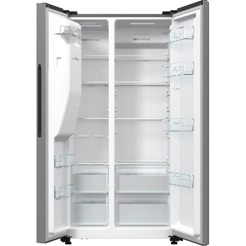 Deze Hisense-koelkast is uitgerust met een ingebouwde water- en ijsdispenser, zodat je altijd kan genieten van gekoeld water en ijsblokjes zonder dat een vaste wateraansluiting nodig is. Dankzij de Total No Frost-technologie hoef je nooit meer te ontdooien; koude lucht circuleert constant en gelijkmatig. Ontdooien is dus verleden tijd. Tot slot zorgt het Multi Air Flow-systeem voor een constante temperatuur op elke legplank, zodat je voedsel langer houdbaar blijft.