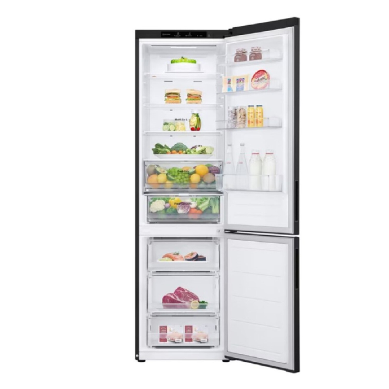 Deze koel-vriezercombinatie GBV22NCBEP van LG heeft een elegant ontwerp in matzwart en past perfect in elke moderne keuken. Met afmetingen van 59,5 x 203 x 67,5 cm (B/H/D) biedt hij een totale inhoud van 343 liter, geschikt voor huishoudens met meerdere personen.. Dankzij het vrijstaande ontwerp en de omkeerbare deuren is hij flexibel te installeren, en past zich aan de indeling van je ruimte. De geïntegreerde handgrepen en de zwart roestvrijstaal afwerking zorgen voor een verfijnde uitstraling. Binnenin zorgt ledverlichting voor goed zicht op de inhoud, zelfs in het donker. Je kunt de temperatuur van de compartimenten eenvoudig aanpassen met behulp van het bedieningspaneel op de deurstijl.