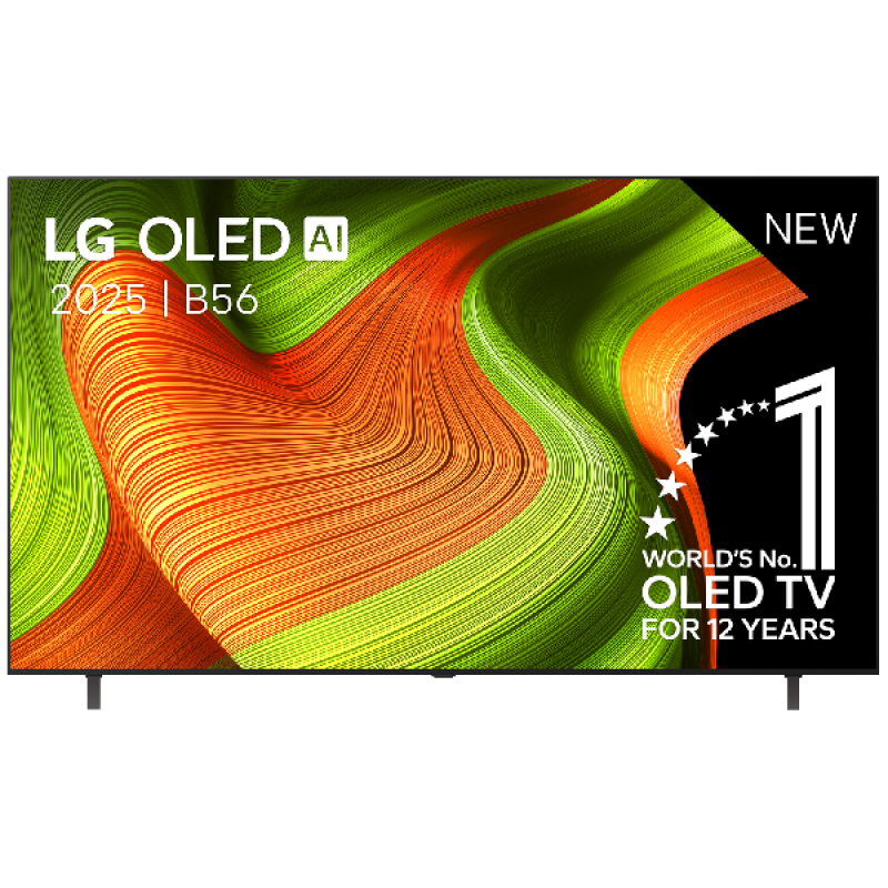 De zwarte LG OLED77B56LA televisie heeft een moderne uitstraling met vloeiende lijnen en past gemakkelijk in je interieur. Met zijn 77-inch scherm is hij sterk aanwezig, maar met een dikte van slechts 46 mm is hij discreet en past hij perfect in je interieur zodra hij op een meubel is geplaatst of aan de muur hangt. Elegant, zonder te overdrijven.