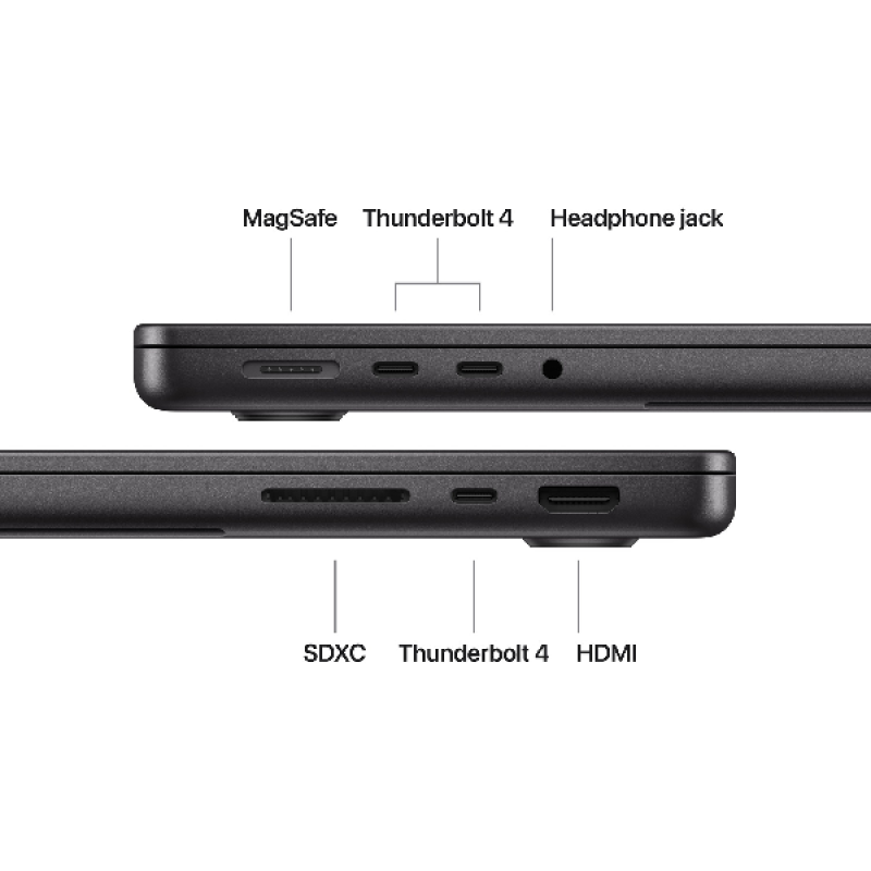Het schitterende 14,2 inch (36.08 cm) Liquid Retina XDR-display met afgeronde hoeken heeft een piekhelderheid tot 1600 nits voor HDR en een contrastverhouding van 1.000.000:1 voor adembenemende beelden met diepe zwarttinten en heldere highlights. Je kunt ook kiezen voor het display met nanotextuur, dat reflecties en schitteringen vermindert. MacBook Pro met 100% gerecycled aluminium in de behuizing kan tegen een stootje en is gemaakt om lang mee te gaan. Hij is beschikbaar in spacezwart en zilver.